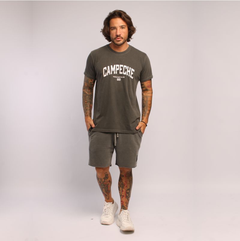 Camiseta Masculina, estonada,modelagem slim, 100% algodão. Com estampa exclusiva Campeche.