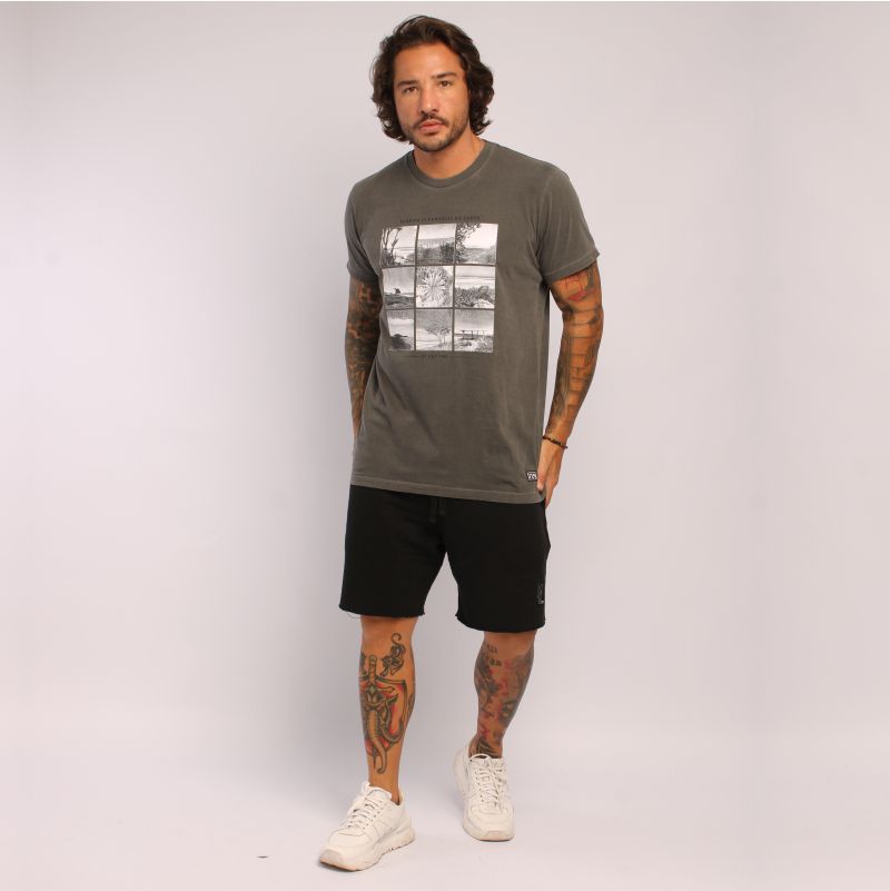 Camiseta Masculina, estonada,modelagem slim, 100% algodão. Com estampa exclusiva Mosaico Praias.