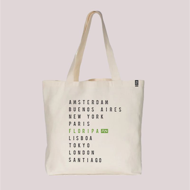 Ecobag em 100% algodão cru leve, com estampa exclusiva FLN.